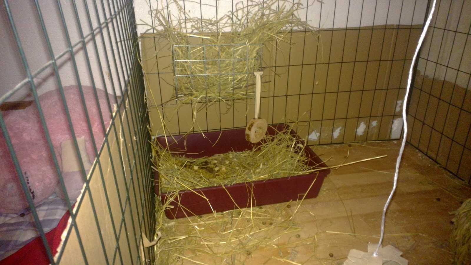 Tässä pari päivää sitten se teki pesän koppiinsa (toivottavasti harjoituspesä, ettei oo valetiine), ja oli myös repiny heiniä vessalootaan.